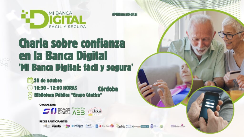 Con motivo del “Día de la Educación Financiera”, la Asociación Española de Banca, la Fundación AEB y Somos Digital organizan la Jornada “Banca digital hacia la inclusión”, dirigida a adultos mayores que quieran adquirir nociones de banca digital y poder usar sus servicios con confianza. Se prestará especial atención a cómo protegerse ante riesgos y fraudes, a la usabilidad y a cómo utilizar los distintos servicios de banca digital de forma segura y protegiendo la privacidad.