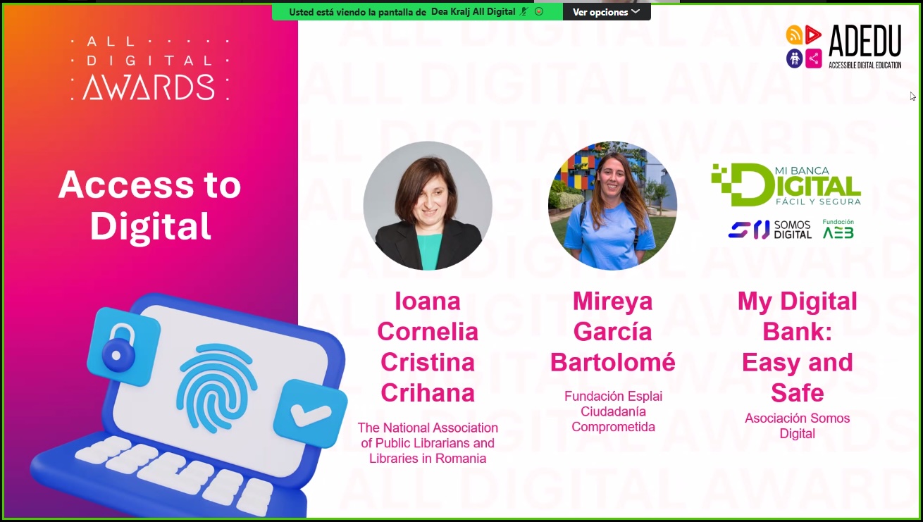 Este evento reunió a las iniciativas ganadoras y finalistas de la categoría Access to Digital de los All Digital Awards, reconociendo prácticas educativas innovadoras que fomentan una educación digital accesible e inclusiva para personas adultas.